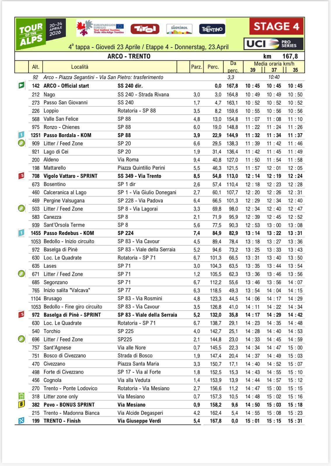 TOUR OF THE ALPS - 4° TAPPA GIOVEDI' 23 APRILE 2026